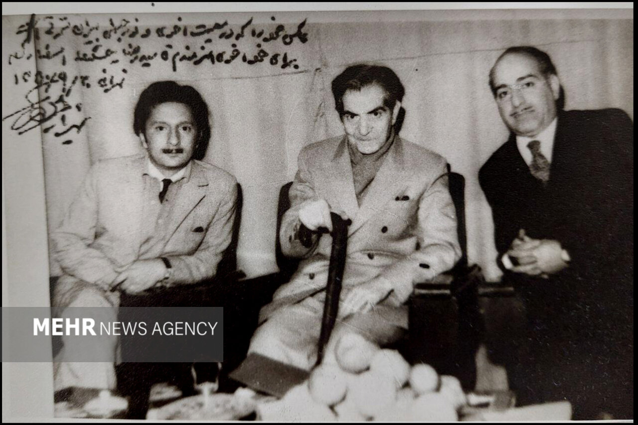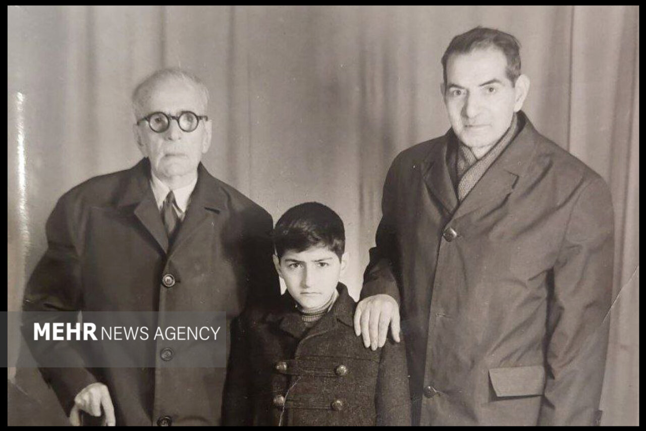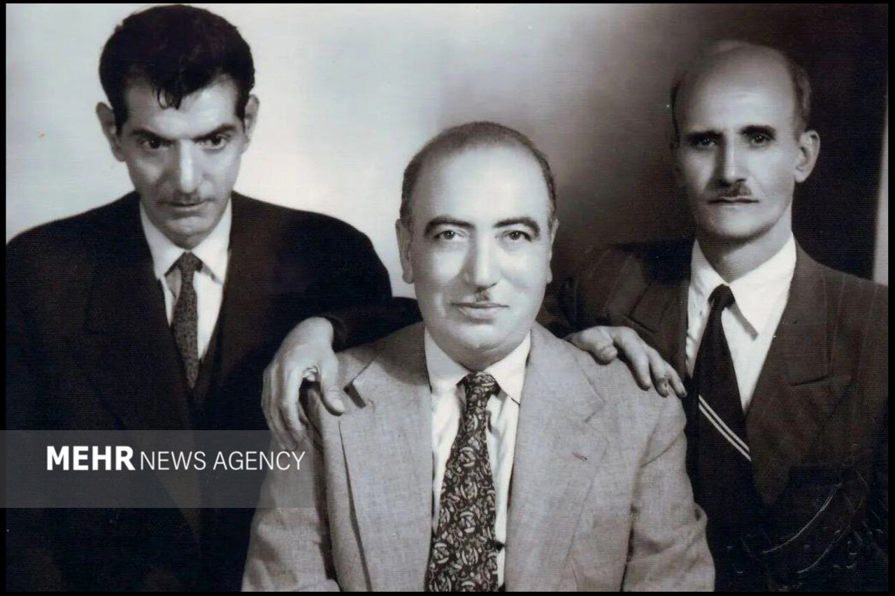از راست: استاد شهریار، هادی بهجت تبریزی (پسر استاد شهریار)، استاد ابوالحسن اقبال آذر (خواننده عهد قاجار)