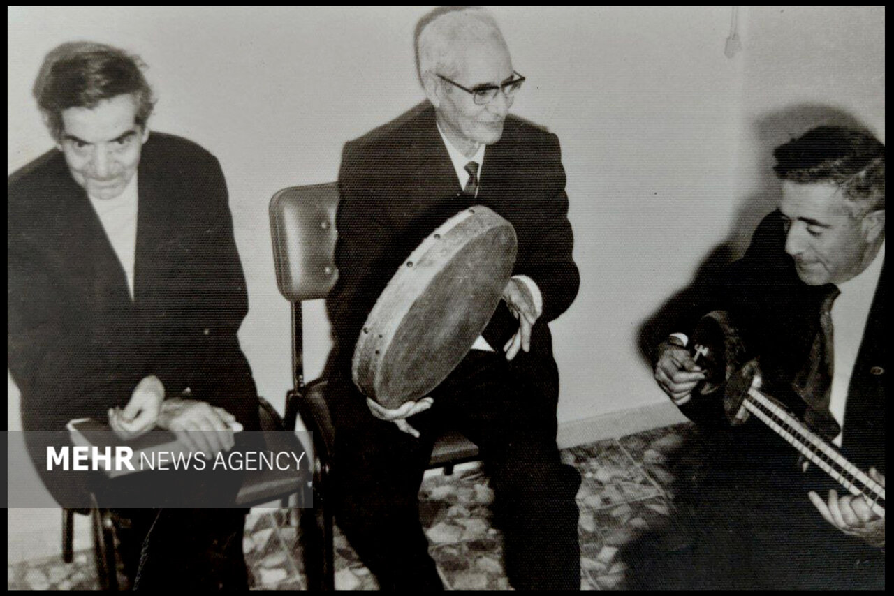 از راست: استاد غلامحسین بیگجه خانی (نوازنده و آهنگساز)، استاد محمود فرنام (نوازنده و آهنگساز)، استاد شهریار