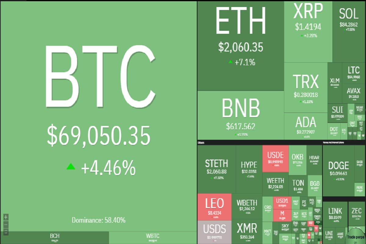 بازگشت تقاضا به بازار کریپتو؛ بیتکوین به آستانه ۷۰ هزار دلار رسید